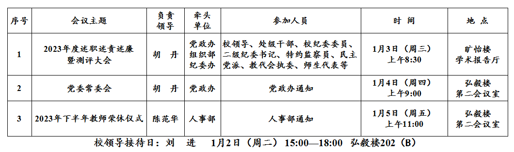 第18周(1月1日—1月7日)主要会议和活动安排