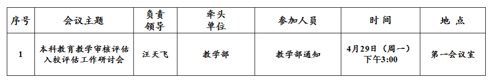 第10周(4月29日—5月5日)主要会议和活动安排
