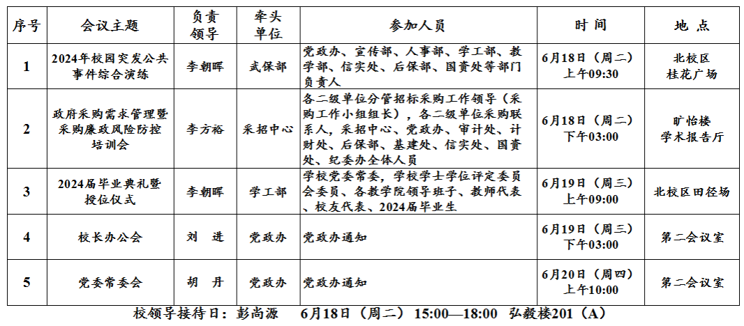 第17周(6月17日—6月23日)主要会议和活动安排