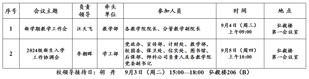 第1周(9月2日—9月8日)主要会议和活动安排