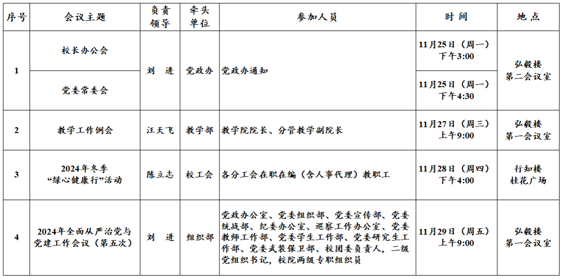 第13周(11月25日—12月1日)主要会议和活动安排