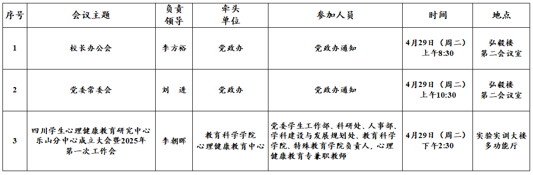 第10周(4月28日—5月4日)主要会议和活动安排