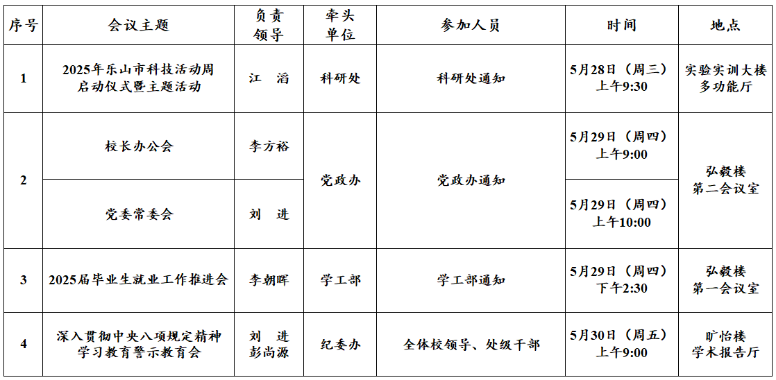 第14周(5月26日—6月1日)主要会议和活动安排