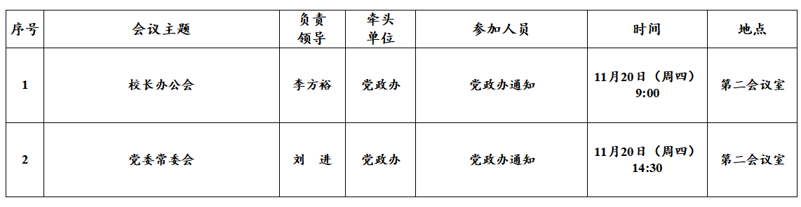 第11周(11月17日—11月23日)主要会议和活动安排