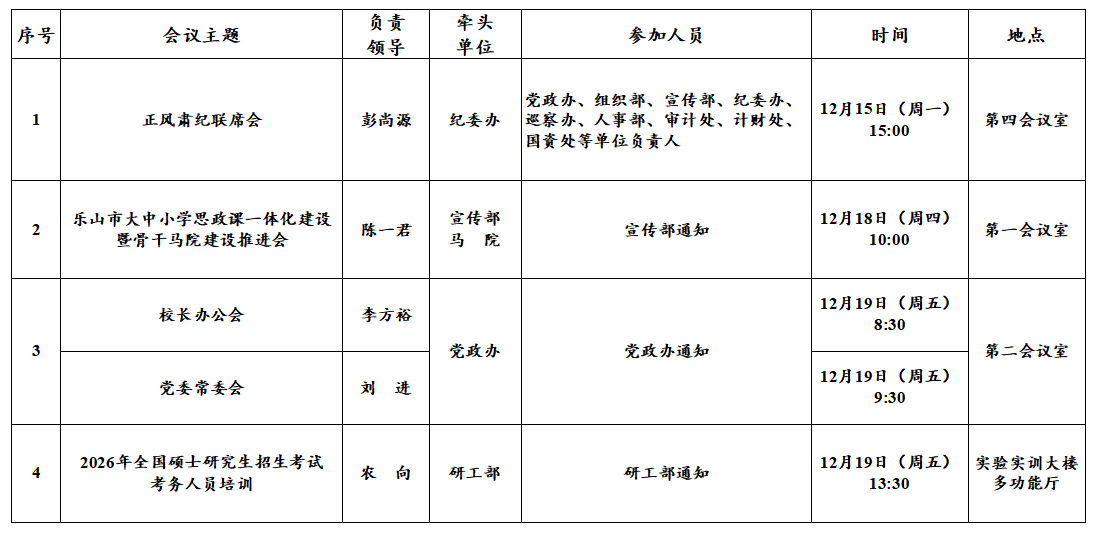 第15周(12月15日—12月21日)主要会议和活动安排
