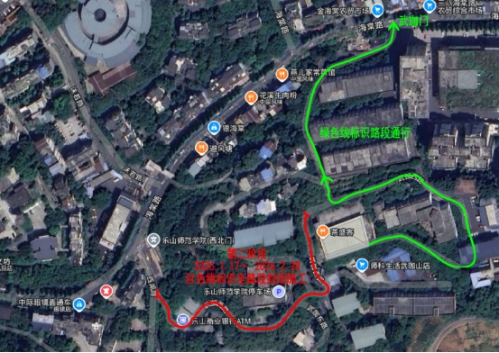 2.第二阶段2026年1月17日18时00分至2026年2月28日18时00分,跨喜中心至武珈山食堂全路段封闭施工,行人、车辆从武珈门通行。