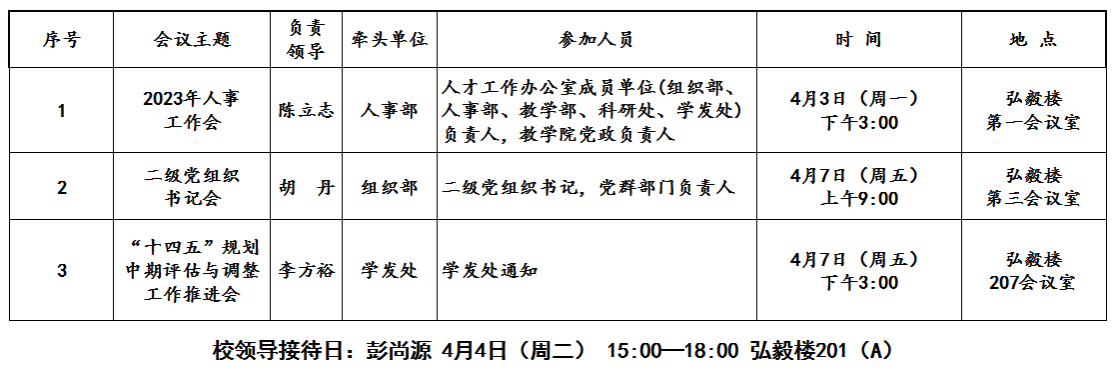 第8周(4月3日—4月9日)主要会议安排