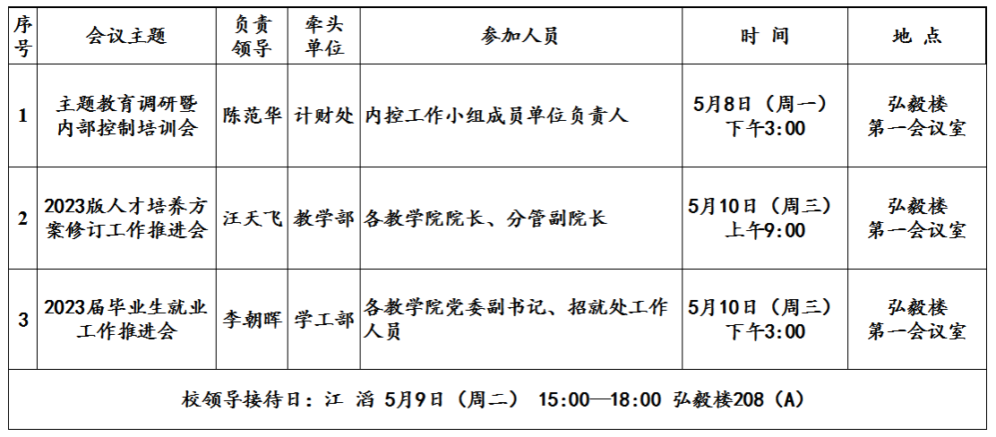 第13周(5月8日—5月14日)主要会议安排