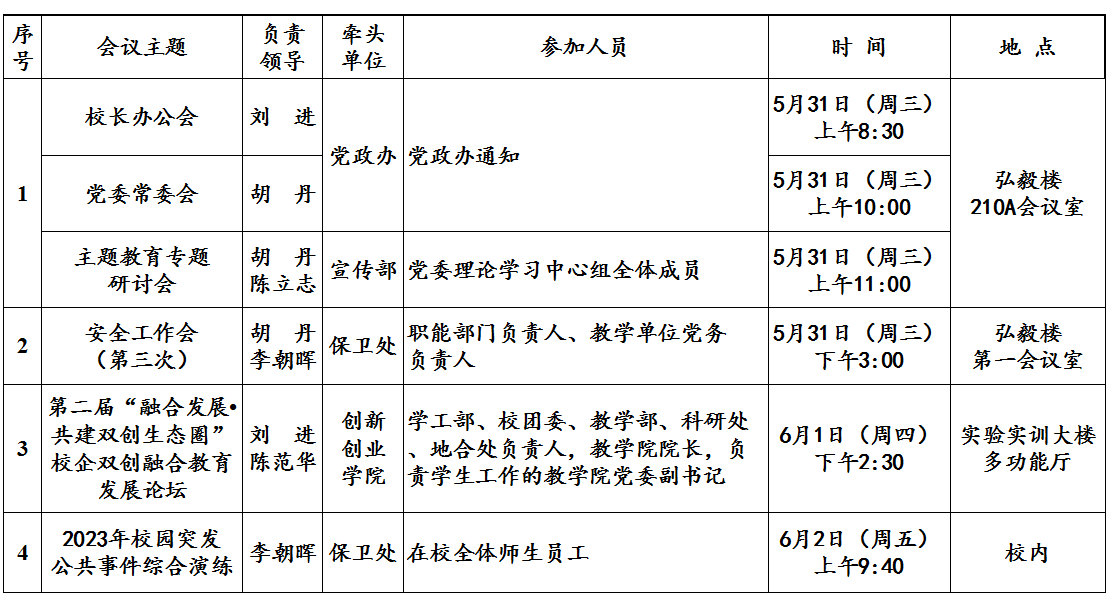 第16周(5月29日—6月4日)主要会议和活动安排