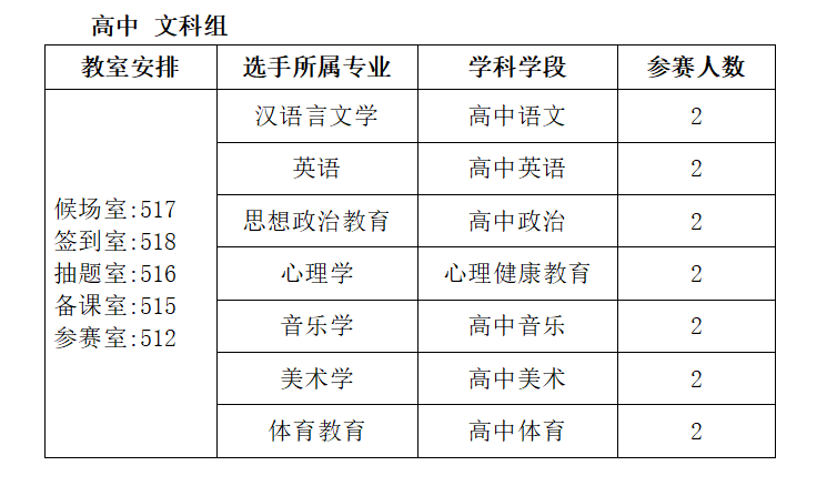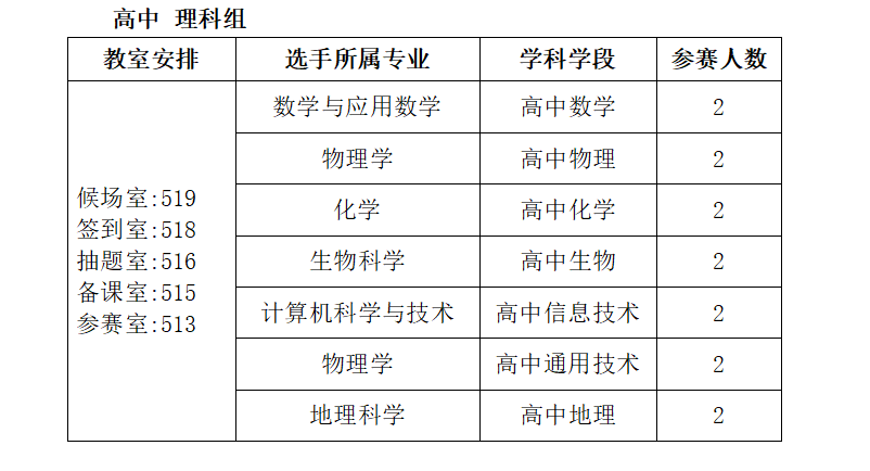 五、竞赛时间、选手分组与教室安排