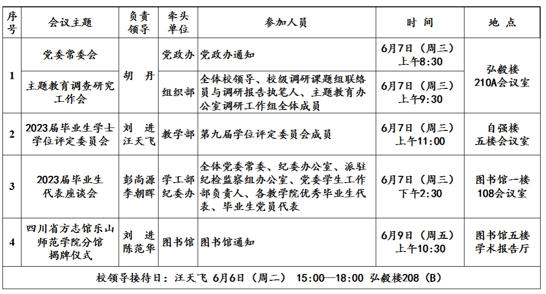 第17周(6月5日—6月11日)主要会议和活动安排