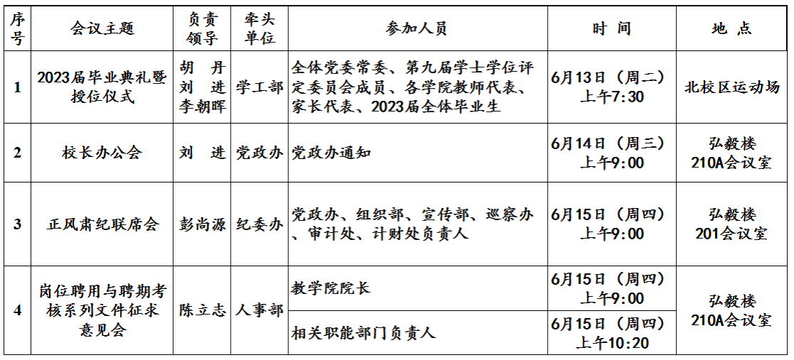 第18周(6月12日—6月18日)主要会议和活动安排