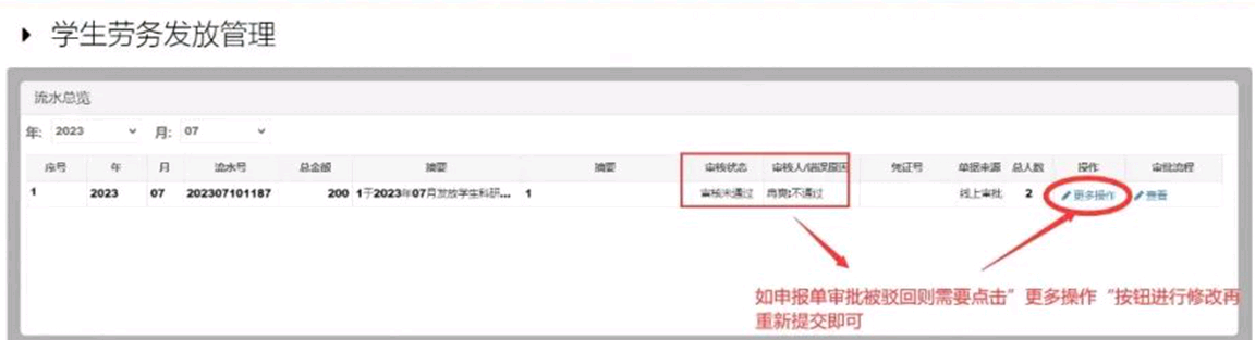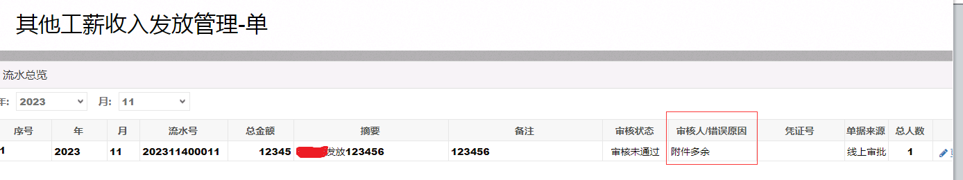 第二步:在“发放管理”菜单中找到相应单据,查看“错误原因”即可了解单据被驳回原因。