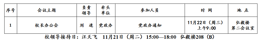 第12周(11月20日—11月26日)主要会议和活动安排