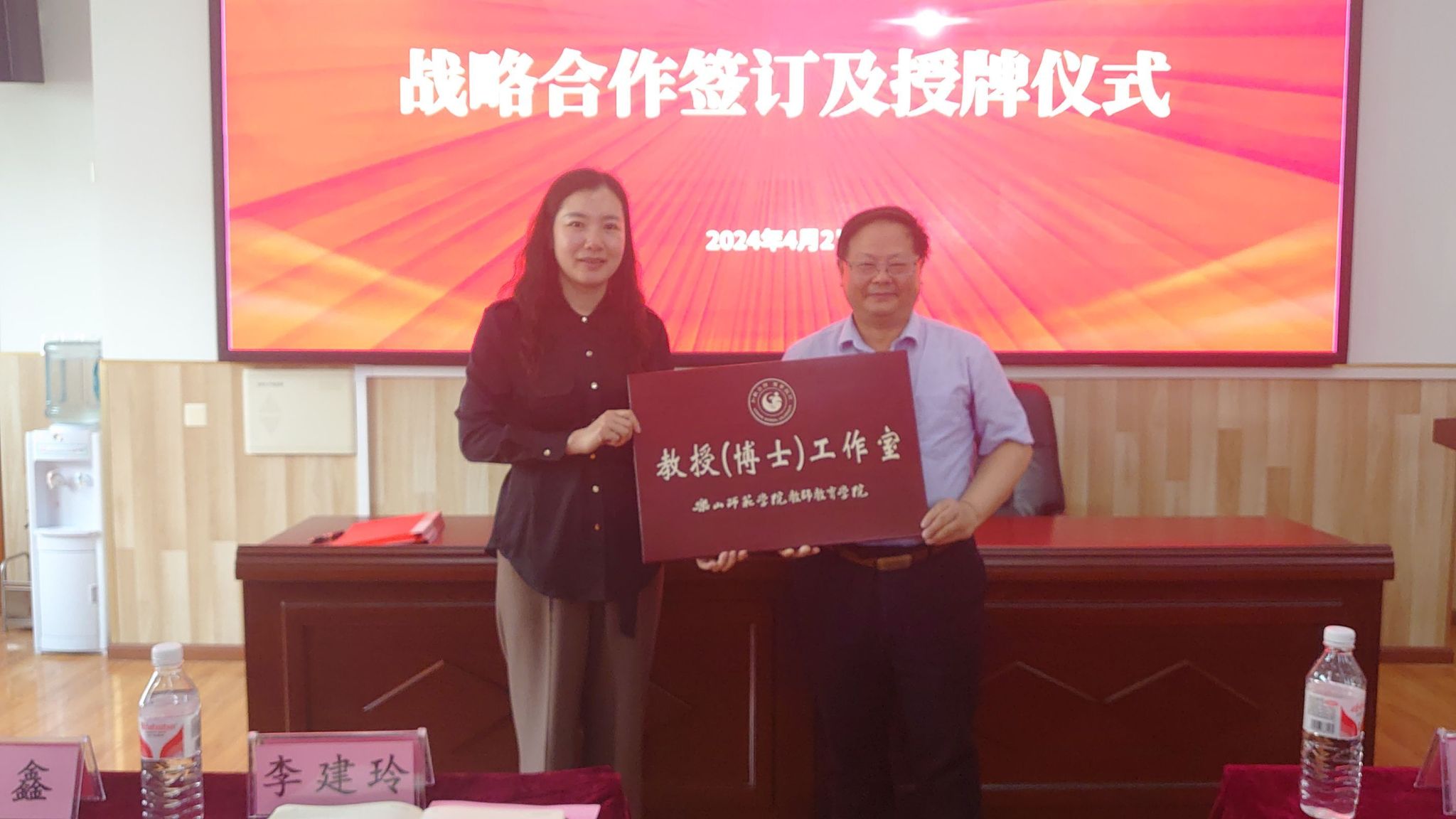 2024年4月3日,乐山师范学院与乐山师范学校附属小学校举行教授(博士)工作室签约与授牌仪式。教师教育学院院长罗明礼、英语学科教学论教授刘丽平、数学学科博士冯新磊、语文学科博士李先锋、师范生职业能力中心杨小丽以及乐山师范学校附属小学校长罗羿、副校长张平、课程质量中心主任黄冬琴、教务管理中心副主任郑莹等人参加了此次签约授牌仪式。