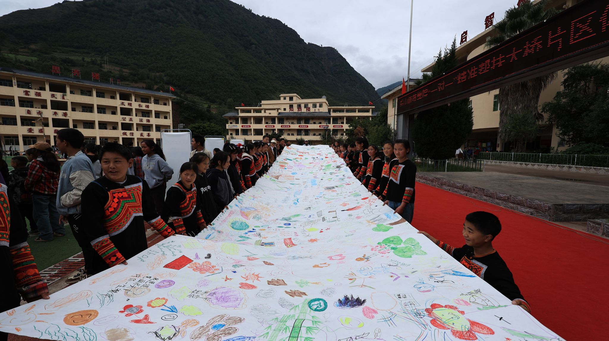 (本网讯 文/伍金威 图/龙海清)为了使高校青年志愿者融入到乡村振兴的伟大事业,同时促进高校美育进乡村校园,10月12日至14日,美术与设计学院师生45人,到凉山州美姑县开展“一对一”精准帮扶活动,并参加学校组织的精准帮扶大桥片区体育艺术节。学院院长熊火花、副书记赵元、油画教研室主任周允、辅导员任自林、伍金威带领40名美术学专业学生参加了此次活动。