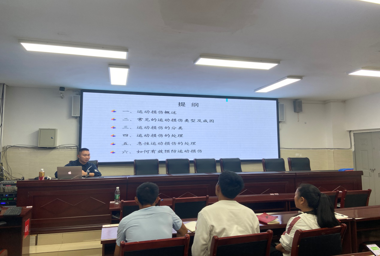 最后,青年骨干教师裴庚结合学校体育教学过程中学生体育锻炼风险,系统讲述了运动损伤的类型、成因、处理和预防方法,有效提升了体育教师在今后教学中学生面对运动损伤时的应急处理能力,同时也加强了学生体育健康促进工作的基础保障。