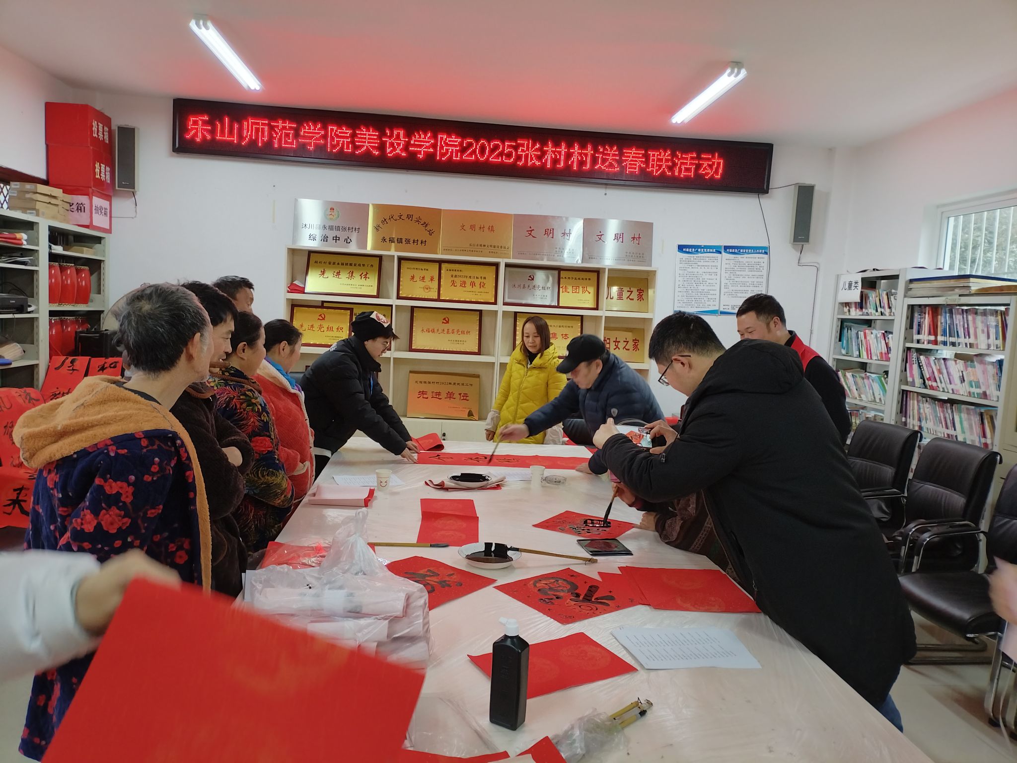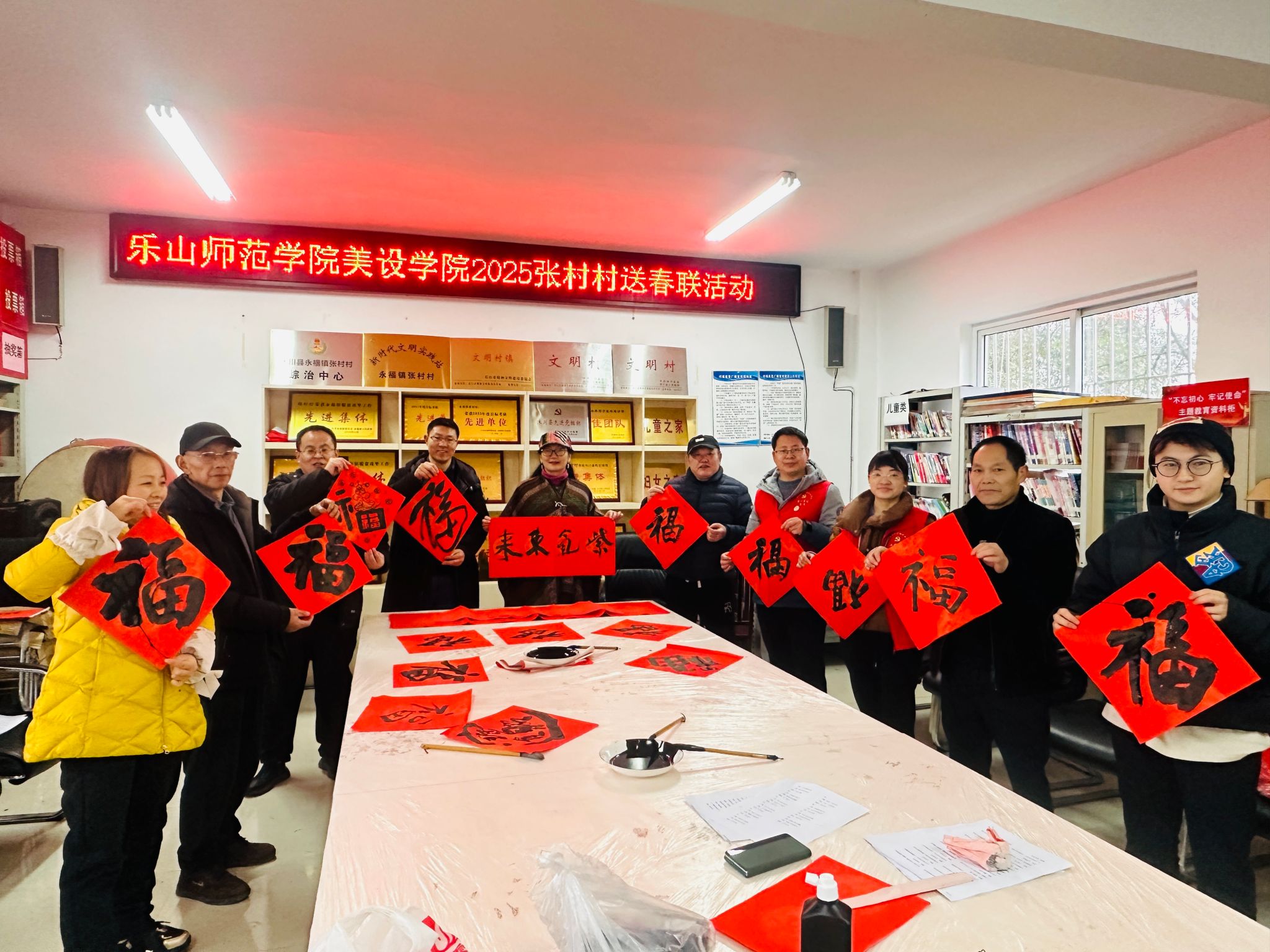本网讯(文/赵元 图/辛纪者) 一年一度的传统佳节春节将至,为助力乡村文化振兴,营造欢乐祥和的节日氛围,1月16日,美术与设计学院书法美育名师工作室师生赴沐川县永福镇张村村开展送春联下乡活动,为当地村民们提前送上新春的美好祝福。学院院长熊火花、党委副书记赵元、退休书法教师杨德明,以及书法美育名师工作室辛纪者等师生代表参加了此次活动。活动得到我校驻村干部资飞、宋家伟、郑燕萍和当地村干部、村民的热情接待。