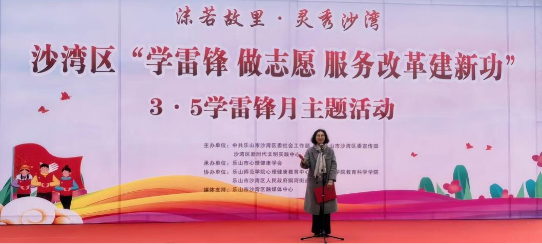 在3月4日沙湾区委社会工作部、区委宣传部、区新时代文明实践中心联合主办的“学雷锋月”主题活动中正式进行了“铜河心桥”社区心理健康服务项目发布。乐山师范学院党委学生工作部副部长、心理健康教育中心主任陶媛对该项目进行了详细介绍。我校教育科学学院、心理健康教育中心协办了其中心理服务志愿活动,“乐师心光"与“乐芽织心”两支心理服务团队共40名师生参与。