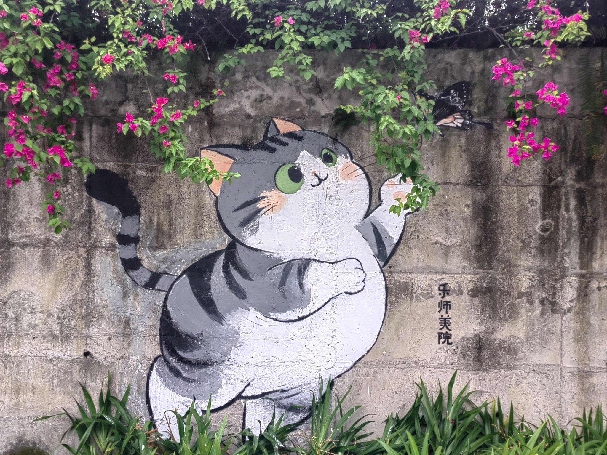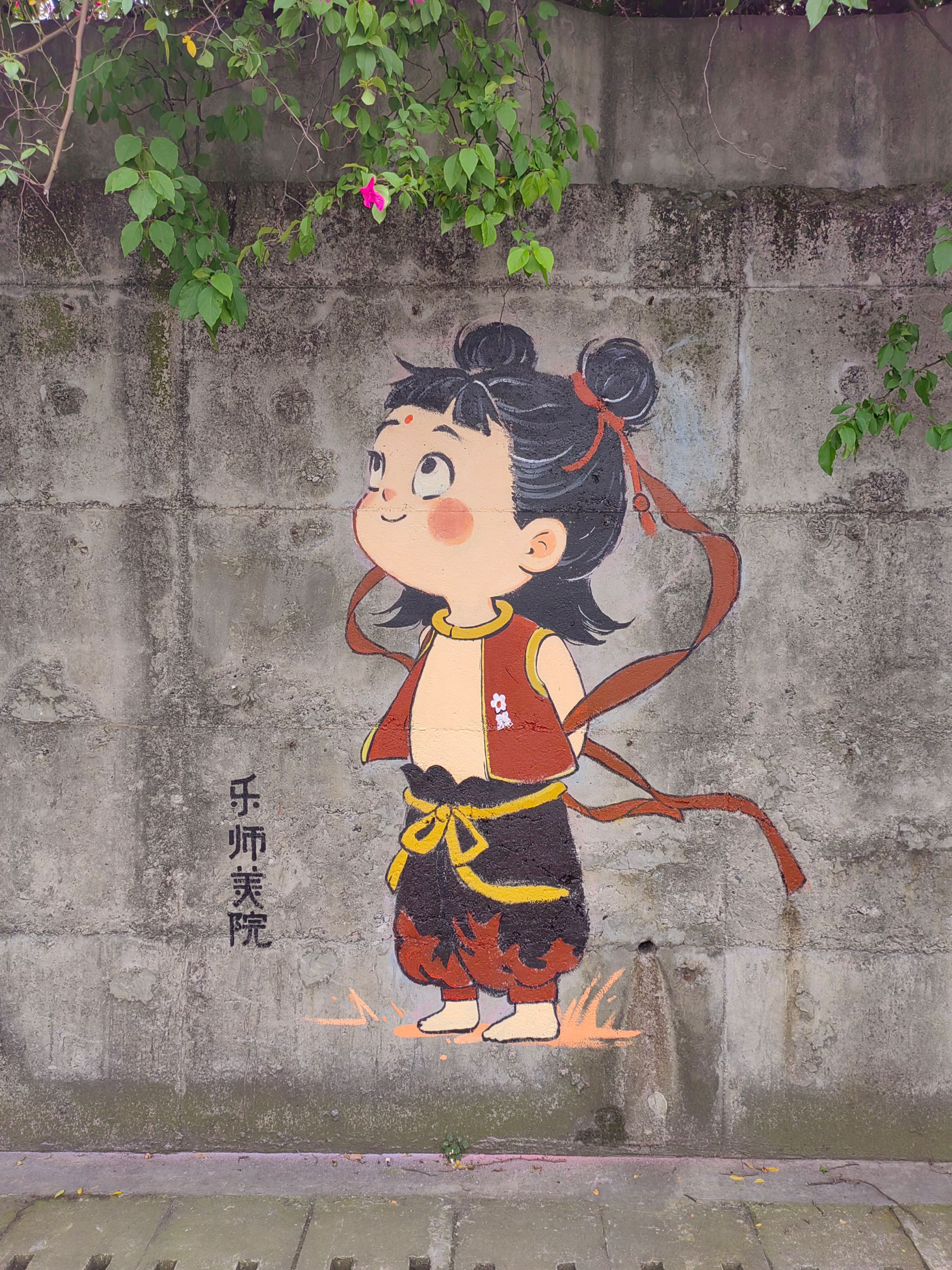 夏日的三角梅依然绚烂,生态大道的高墙上,一幅幅作品在师生笔下诞生。当花海遇上艺术,当青春邂逅乡土,这条十公里长廊正书写着校地共融的生动篇章——画笔点染之处,自然之美、艺术之美与人文之美在此刻共生共荣,为乐山这座文化名城增添一抹青春亮色。