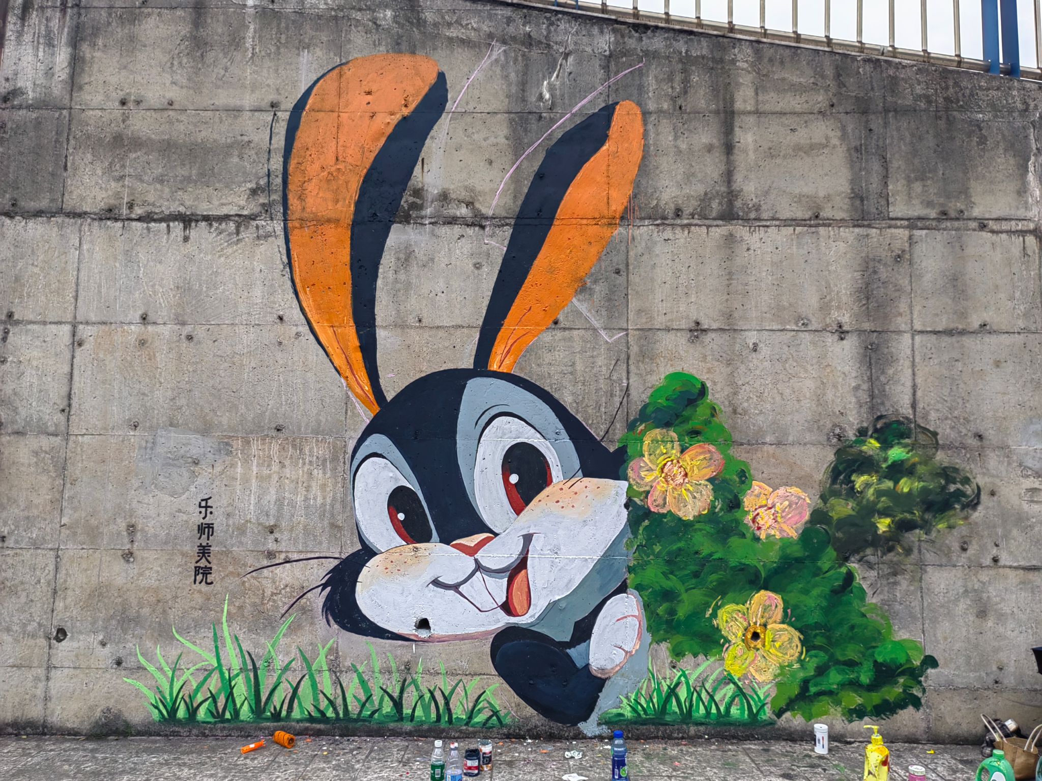 5月初,乐山师范学院与沙湾区达成合作意向,启动生态大道美化项目,由学校校地合作处牵头,美术与设计学院具体落实,精心选派美术学专业的30余名师生组成创作团队,进驻生态大道沿线开展主题墙绘创作。