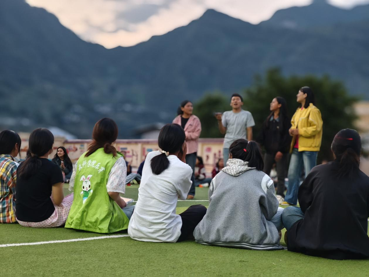 本次活动也是将前期成果带到民族地区推广实践,中心的专兼职老师们带领乐芽织心学生志愿者团队,引导孩子们探索索玛花、竹子等植物在彝族文化中的深厚象征意义,建立自然与心灵的和谐联结。在精心设计的“花瓣情绪释放”环节,孩子们将心事寄语系于花瓣,随风飘散,象征着烦恼的释然;“叶片声形绘画”活动中,孩子们聆听叶片婆娑,将内在情绪转化为色彩与线条,学习表达与自我调适,这正是“掌心的森林”感官唤醒疗愈理念的生动延伸。