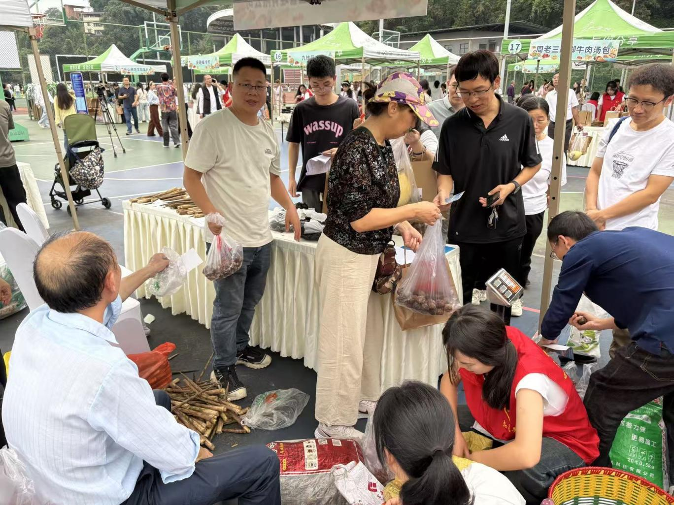 资飞(左一)带货参加乐山师范学院2025年乡村振兴农副产品展销会