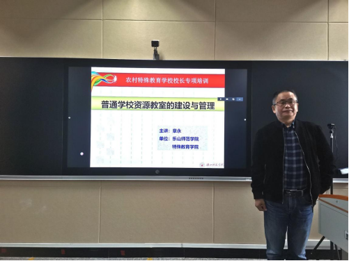 11月21日,乐山师范学院特殊教育学院章永教授和李秀副教授在我校弘毅楼504A、504B分别为参训学员分享了题为《普通学校特殊教育资源教室的建设与运行》和《县级特殊教育资源中心的资源中心(教室)建设 康复课程建设研讨 融合教育经验分享建设与发展》主题讲座。