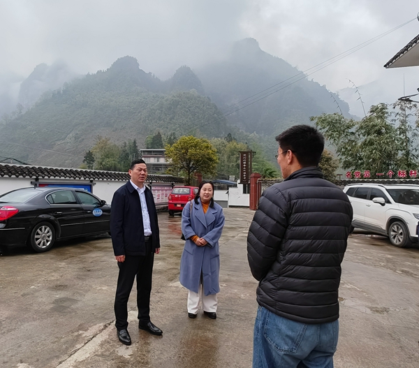 本网讯(文、图/伏雪涛)3月28日,学校党委副书记、纪委书记彭尚源到沐川县调研茶产业发展情况,看望挂职帮扶干部、慰问脱贫户。校地合作处相关工作人员同行。