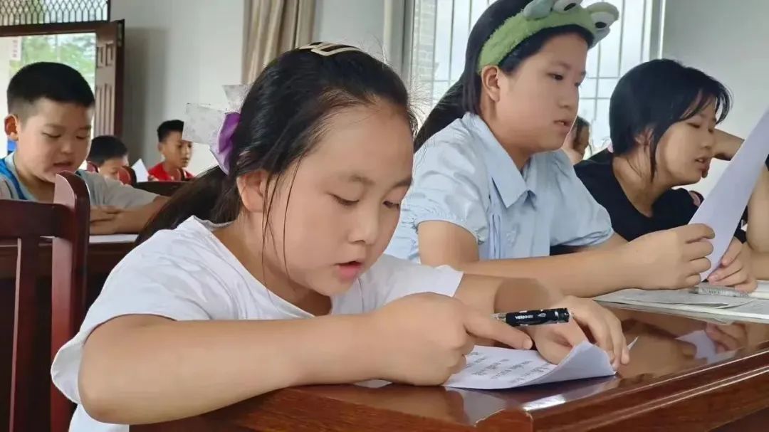 7月4日,志愿者们开始了写作课的教学。志愿者通过实例讲解了如何利用嗅觉、视觉、味觉、听觉、触觉五个感官来描写事物,再让小朋友们当场创作,并对他们的作品进行了一对一地指导。
