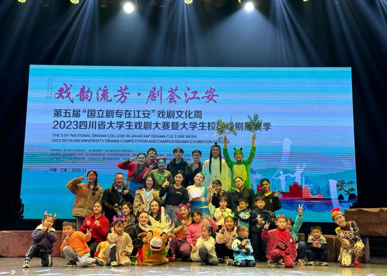 本网讯(文、图/唐姝倩)2023四川省大学生戏剧大赛暨大学生校园戏剧展演季大型剧目在宜宾市江安剧场拉开帷幕,此次比赛由四川省文化和旅游厅、四川省教育厅、四川省文学艺术界联合会主办,四川省剧目工作室( 四川艺术基金管理中心)、四川省戏剧家协会承办。本届四川省大学生戏剧大赛暨大学生校园戏剧展演季共有来自全省各高校共接到两百余部的剧目参赛,其中入选了6部大型剧目,乐山师范学院教育科学学院的原创儿童剧《沐沐奇遇记》成功入选此次比赛的大型剧目组别,并于11月27日奔赴宜宾江安剧场进行比赛。