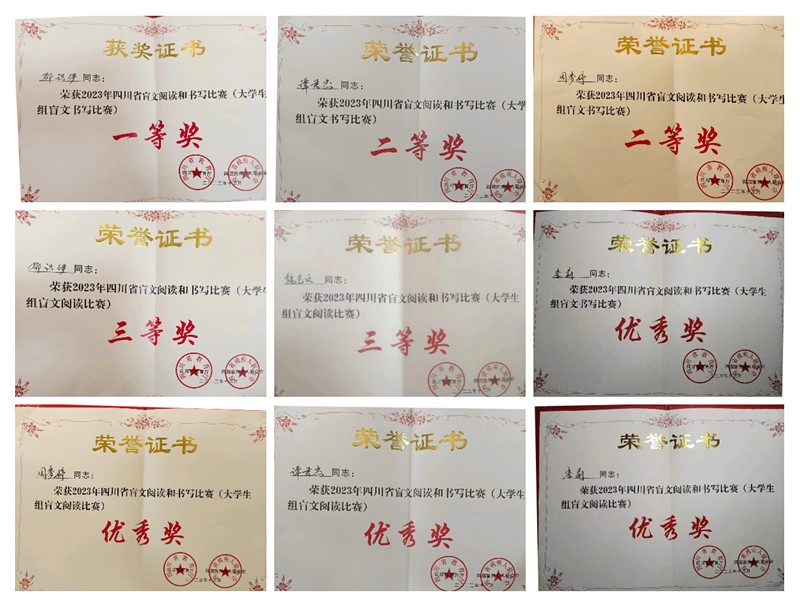 本次比赛的参赛选手来自四川省各市州残联、培养特殊教育师资的高校和特殊教育学校,大赛共分盲人组、教师组和大学生组三个组别。我院五名学生参加了大学生组盲文阅读和书写项目。阅读比赛主要是在10分钟内将150字的盲文翻译成汉字,书写比赛的主要内容为在20分钟内将一篇50字短文翻译成盲文。在了解比赛规则之后,参赛人员进入比赛现场参加比赛。赛场上我院五名选手专心致志、争分夺秒,以沉着冷静的姿态完成了比赛。最后,乐山师范学院获得了2023年四川省盲文阅读和书写比赛优秀组织奖,我院邵识伊等五名同学斩获2023年四川省盲文阅读和书写比赛的一等奖、二等奖、三等奖以及优秀奖共九项。