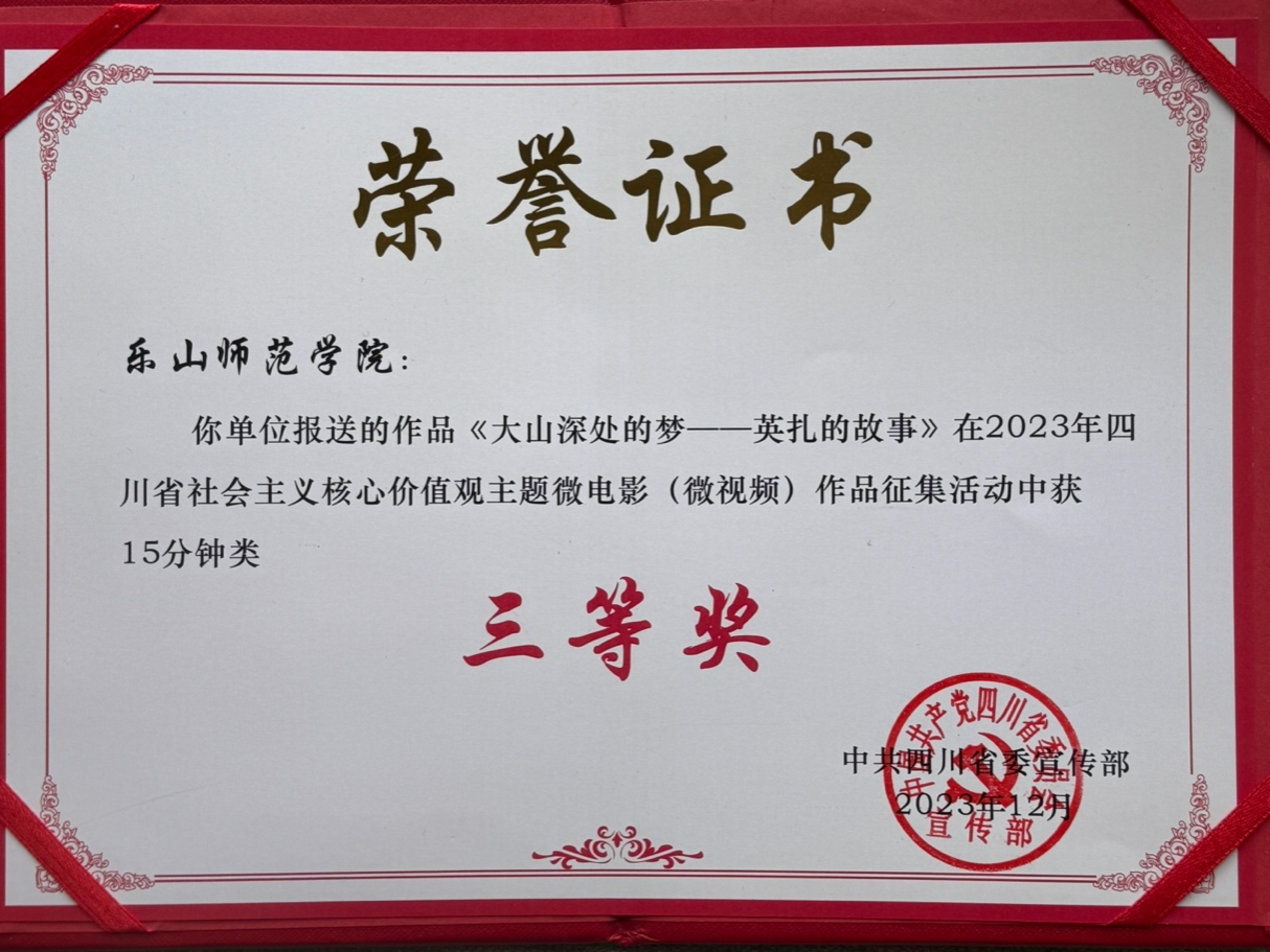 本网讯(文、图/罗伟崎)由中共四川省委宣传部主办的2023年四川省社会主义核心价值观主题微电影(微视频)作品征集活动于2023年12月落下帷幕,美术与设计学院学生作品喜获三等奖。