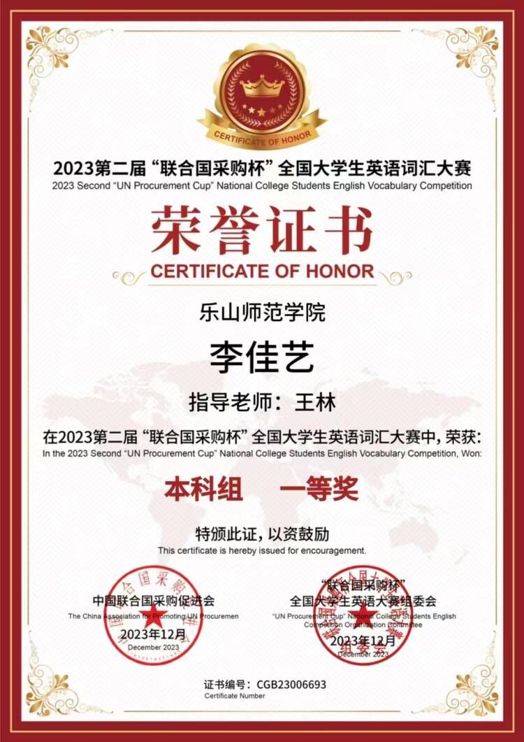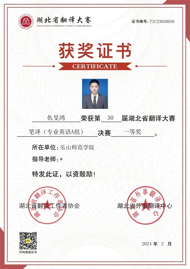 本网讯(文/图:王林)近日,三项翻译大赛和一项词汇大赛公布结果,外国语学院学生取得佳绩。外国语学院翻译专业2022级仇旻鸿获得2023年“思源华为”杯创译大赛三等奖和第三十届湖北省翻译大赛初赛一等奖、决赛一等奖,并入选湖北省翻译工作者协会学生会员;翻译专业2022级张小涵获得2023年全国编译大赛三等奖;翻译专业2022级李佳艺获得第二届“联合国采购杯”全国大学生英语词汇大赛一等奖。