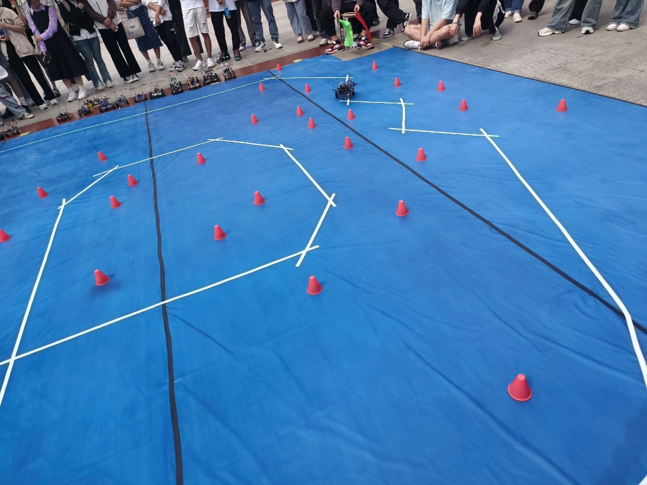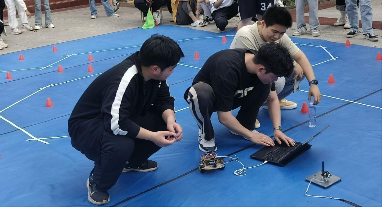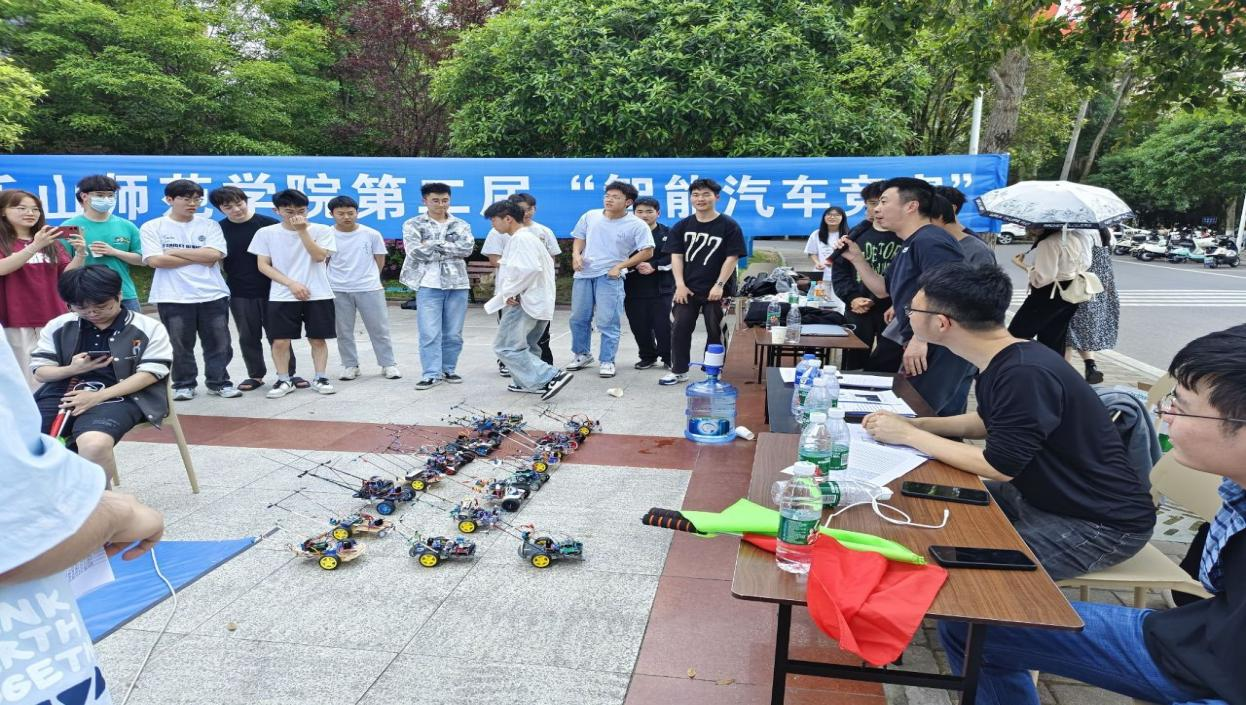 本网讯(文、图/杨济豪)全国大学生智能汽车竞赛是面向全校大学生开展的具有探索性的工程实践活动,旨在激发大学生从事工程技术开发和科学研究探索的兴趣和潜能,培养大学生理论联系实际、求真务实的学风和团队协作的人文精神。为了提高我校参赛队伍能力,增强其在全国比赛中的竞争力,乐山师范学院电子信息与人工智能学院主办了学校第二届大学生智能汽车竞赛,并在2024年4月11日下午于实训楼前圆满举行。比赛期间,电智学院党委副书记李骏等领导和老师来到比赛现场,对参赛师生进行了鼓励和指导。