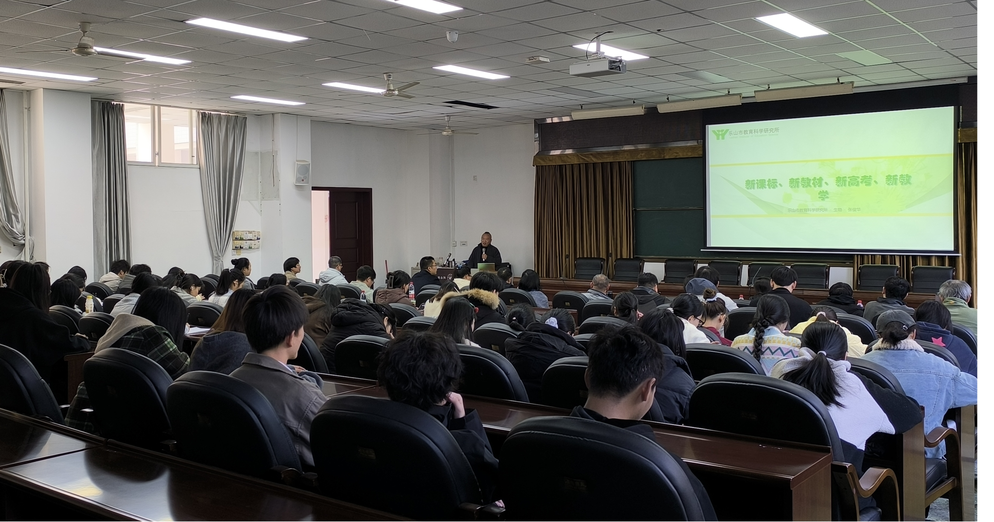 论坛首先由乐山市教科所生物教研员张俊华在弘毅楼312会议室做论坛专题报告-新课标、新教材、新高考、新教学,对最新的中学生物课程和教学相关内容进行了解读。