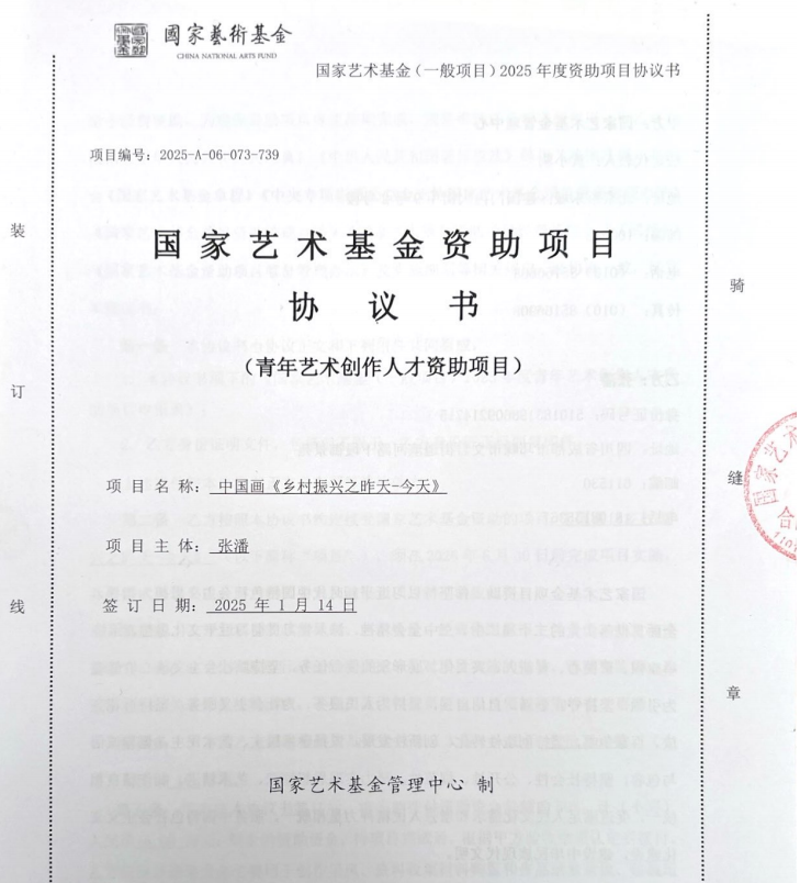 本网讯(文/赵元 图/张潘) 樱花烂漫,春意醉人。近日,我校美术与设计学院特聘教授张潘以乐山师范学院作为立项单位,与国家艺术基金签订资助项目协议书,意味着他主持创作的中国画《乡村振兴之昨天——今天》成功立项国家艺术基金美术创作资助项目。