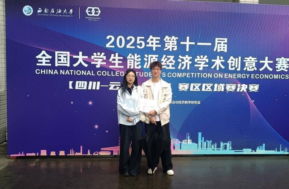 全国大学生能源经济学术创意大赛作为高规格学科竞赛,聚焦能源经济前沿议题,吸引川滇藏多所高校的学生同台竞技。备赛期间,我院指导老师们凭借深厚的专业知识和丰富的指导经验,从选题设计到成果打磨全程把关。赛场上,参赛团队紧密协作,通过扎实调研与反复论证,不断优化作品。最终,他们在激烈的角逐中脱颖而出,取得优异成绩。