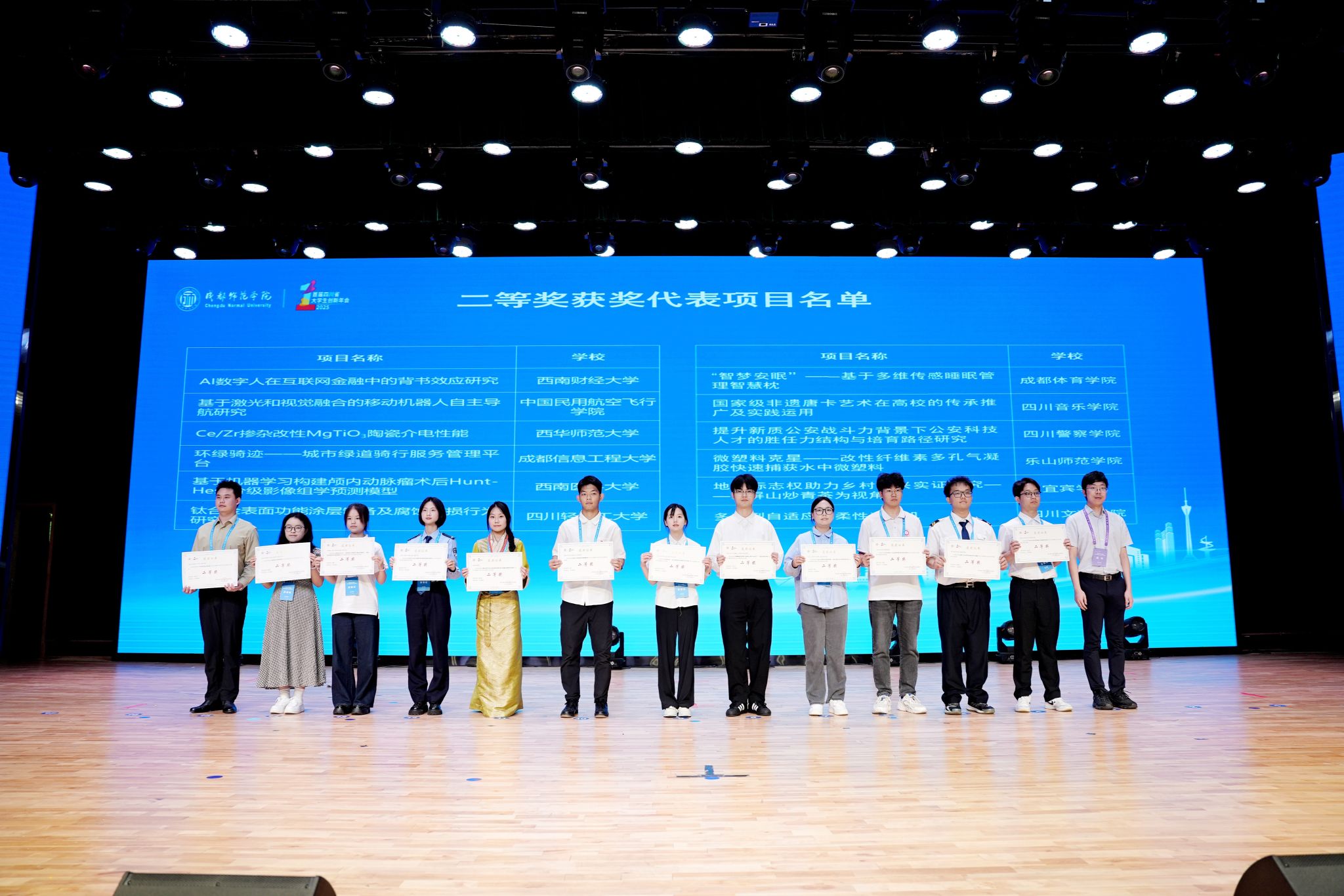 本网讯(文、图/朱宁丝)2025年7月5日,首届四川省大学生创新年会在成都师范学院举行。凭借扎实的创新实践成果,我校共获得9个奖项,包括2个二等奖、7个三等奖。这一成绩充分展现了学校在大学生创新人才培养方面的显著成效。