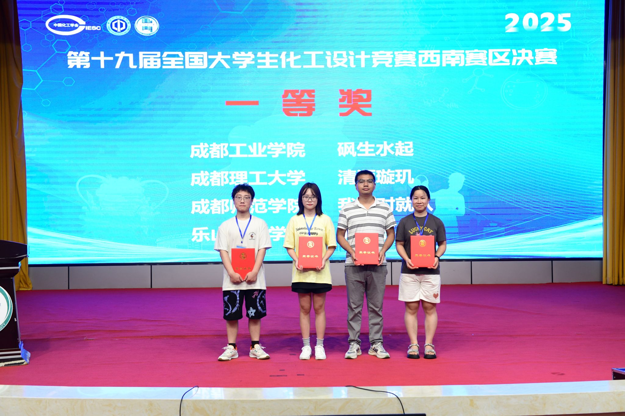 本网讯(文/闫胜利、图/郑皓泽)7月31日,由中国化工学会和中国化工教育协会主办、四川师范大学承办的第十九届全国大学生化工设计竞赛西南赛区决赛在成都落下帷幕。由新能源材料与化学学院2023级化学专业五名队员组成的“砜韵嘉州”队,继取得四川省赛一等奖后,再接再厉,又以出色的成绩喜获西南赛区一等奖。