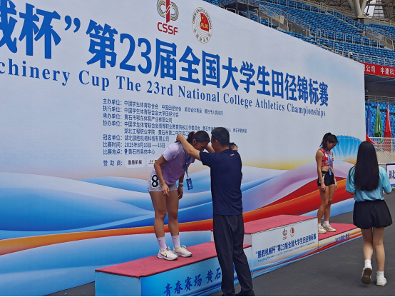 本网讯(文、图/孟亚兰)8月8日-15日,2025年全国大学生田径锦标赛在湖北黄石举办,本次比赛由中国学生体育联合会、中国田径协会、黄石市人民政府主办,共有来自清华大学、北京大学、复旦大学、北京体育大学等全国590所高校的近5100多名运动员参赛。本赛事为国内年度大学生田径最高级别赛事,参赛代表队和人数创办赛以来之最。我校田径队由体育教育学院院长黄河担任领队,孟亚兰担任教练参赛。