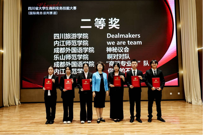 本网讯(文、图/陈析西)10月17日至18日,由四川省教育厅主办、西南财经大学承办、四川旅游学院协办的四川省大学生商科实务技能大赛(国际商务谈判赛道)在四川旅游学院圆满落幕。我校外国语学院商务英语专业组建的3支代表队一路突围,最终实现全员获奖,斩获二等奖1项、三等奖2项,较过往参赛成绩实现稳步突破。