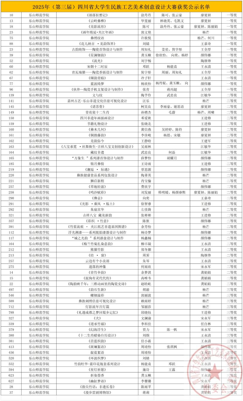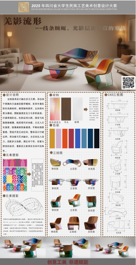 本网讯(文、图/王全厚)10月17日至19日,由四川省教育厅主办的第三届(2025)四川省大学生民族工艺美术创意设计大赛决赛在阿坝师范学院成功举办。我校美术与设计学院师生携精心创作的作品积极参赛,凭借扎实的专业素养与出色的创意表现,在决赛现场展现出卓越的实力。