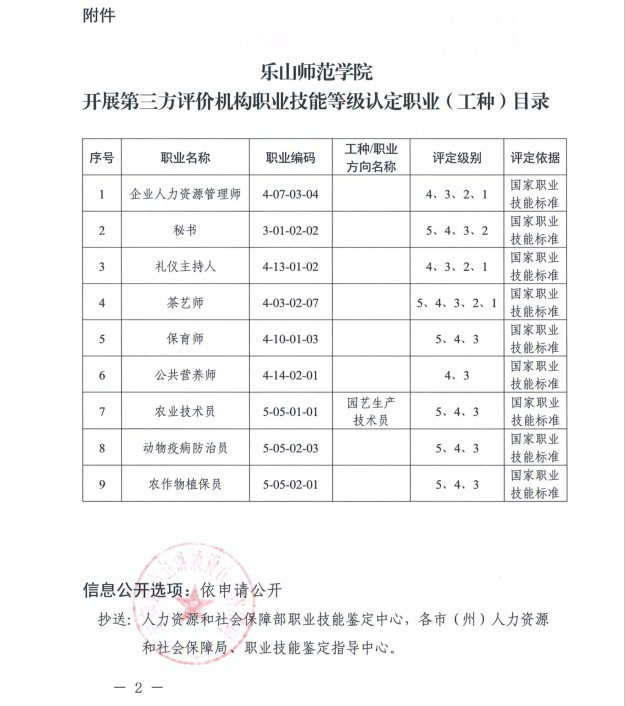 本网讯(文图/赵玉芹)近日,我校获批成为四川省职业技能等级认定第三方评价机构,取得面向校内学生和社会人员开展职业技能等级认定的资质,可按照相关职业(工种)国家职业技能标准,依据职业技能等级认定规范开展职业技能等级评价、颁发职业技能等级认定证书。获批的9个职业为:企业人力资源管理师、秘书、礼仪主持人、茶艺师、保育师、公共营养师、农业技术员(园艺生产技术员)、动物疫病防治员、农作物植保员。