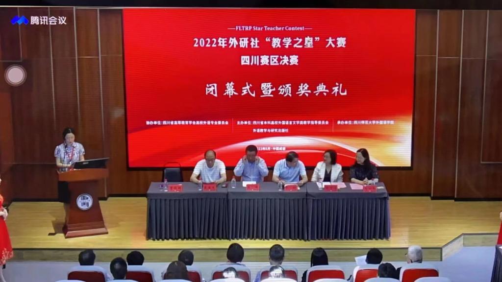 本网讯(文/王静 图/谢丽莎),为进一步深化大学英语教学改革,推动高校英语教学整体发展,促进高校英语教师教育教学能力提升,2022年全国高等学校英语教师“教学之星”大赛四川赛区省级决赛于2022年5月28日举行,外国语学院大学外语团队成功晋级参加省级决赛并荣获三等奖。本次大赛由四川省普通本科高校外国语言文学类教学指导委员会与外语教学与研究出版社共同主办,四川省高等教育学会高校外语专业委员会协办,四川师范大学承办。整个比赛准备工作前后历时一个多月,学院高度重视,学院领导多次参与比赛打磨,组织大学外语骨干教师全力支持教学设计和教学打磨工作。
