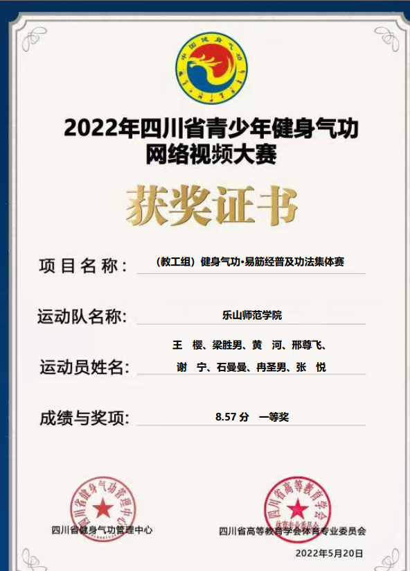 我校教职工参加2022年四川省青少年健身气功网络视频大赛获得一等奖