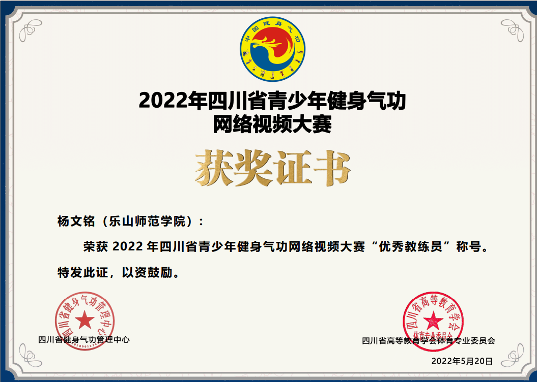 本网讯(文、图/杨文铭)5月20日,由四川省健身气功管理中心、四川省高等教育学会体育专业委员会主办的2022年四川省青少年健身气功网络视频大赛圆满落幕。全省36所学校,107支队伍517人参赛。