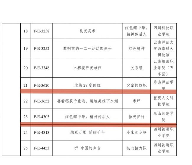 由王一鸣、冉勇老师带领的“父辈的旗帜”团队以《北纬27°的红》、以及由刘延超老师指导的“拾光梦行”团队作品《红色耀中华,精神传后人》获得红色精神微讲解西南赛区二等奖。