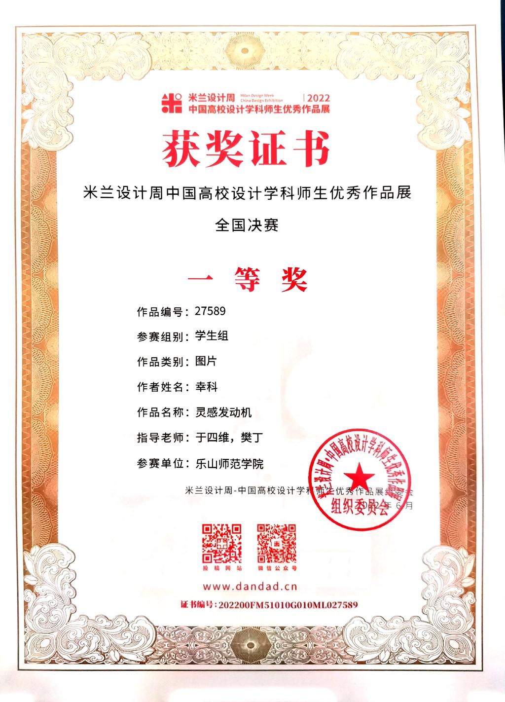 本网讯(图/文 于四维)近日,2022年第六届“米兰设计周-中国高校设计学科师生优秀作品展”发布获奖名单,我院师生取得优异成绩,获得全国总决赛一等奖1项,二等奖6项,三等奖10项。获得四川赛区一等奖13项,二等奖33项,三等奖37项,共计获得奖项101项;廖昂、方薇、廖夏妍、王进修、王晓松、李兴成、敬静、颜伟娜、杨芒、于四维、樊丁11位老师获优秀指导教师奖。同时我校还获得主办方颁发的优秀组织奖!此次大赛我院获奖质量和数量都创新高,充分展现了学院坚持对标进竟、争创一流,坚持以赛促学、以赛促教的阶段性成果。