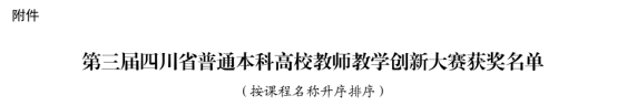 本网讯(文、图/代丽)5月9日,四川省教育厅公布了第三届四川省普通本科高校教师教学创新大赛获奖名单,我校黄宽娜、方德静、张立3名教师(团队)分别获得正高组、副高组、中级及以下组三等奖。